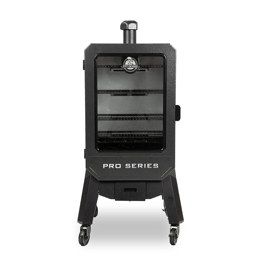 PRO V4P vertical pellet smoker with WiFi connectivity for app_based temperature control. Vertical cabinet design...